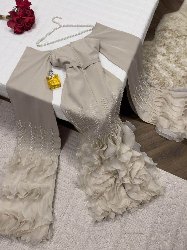فستان السهرات لون بيج